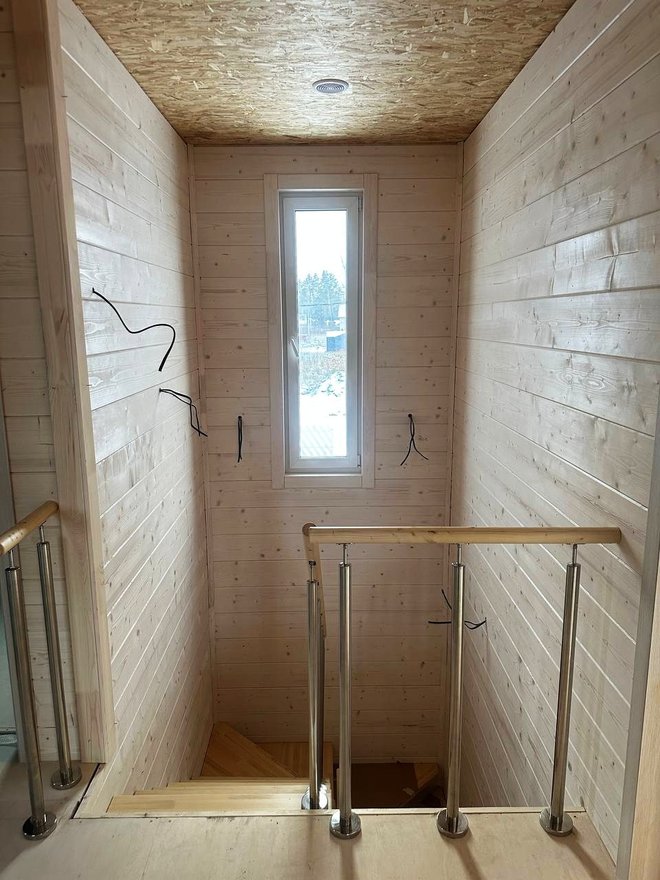 Получилось даже лучше, чем мы представляли себе. Во всех комнатах очень светло, при этом огромные ПВХ окна не пропускают холодный воздух (даже во время сильного ветра и морозов). Мы боялись, что в каркасном доме будет недостаточная звукоизоляция, но оказалось напрасно. Посторонние звуки не доносятся в жилые комнаты, можно спокойно отдыхать, когда внизу собираются гости.